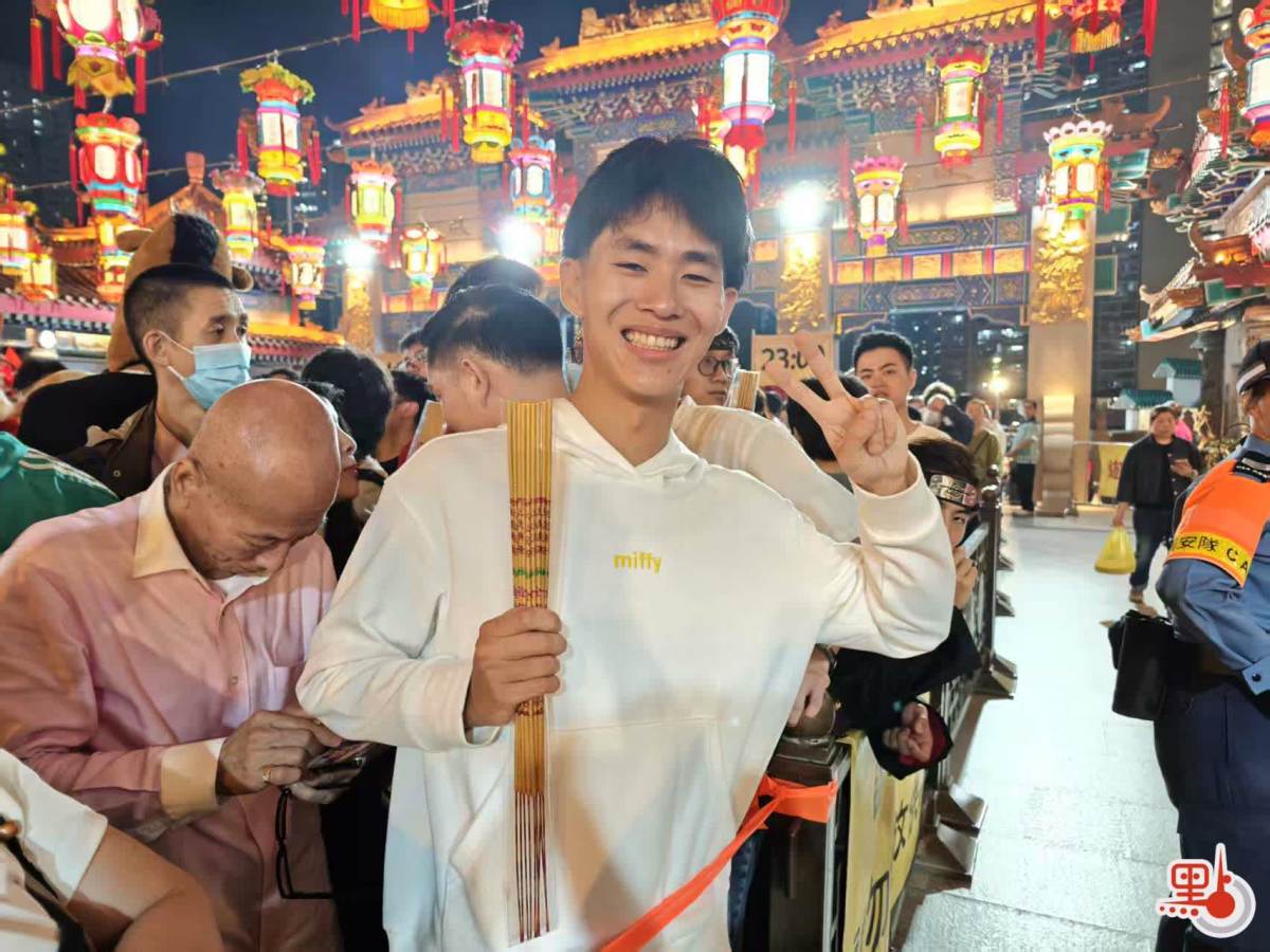 身居頭位的Jonathan告訴記者,他為了搶得頭炷香,一早6時便來到祠外排隊等候;而當放行一刻來臨,他奮力衝刺「不管那麼多,飛奔衝上去」,直到確認身處頭位後才放下「心中大石」。