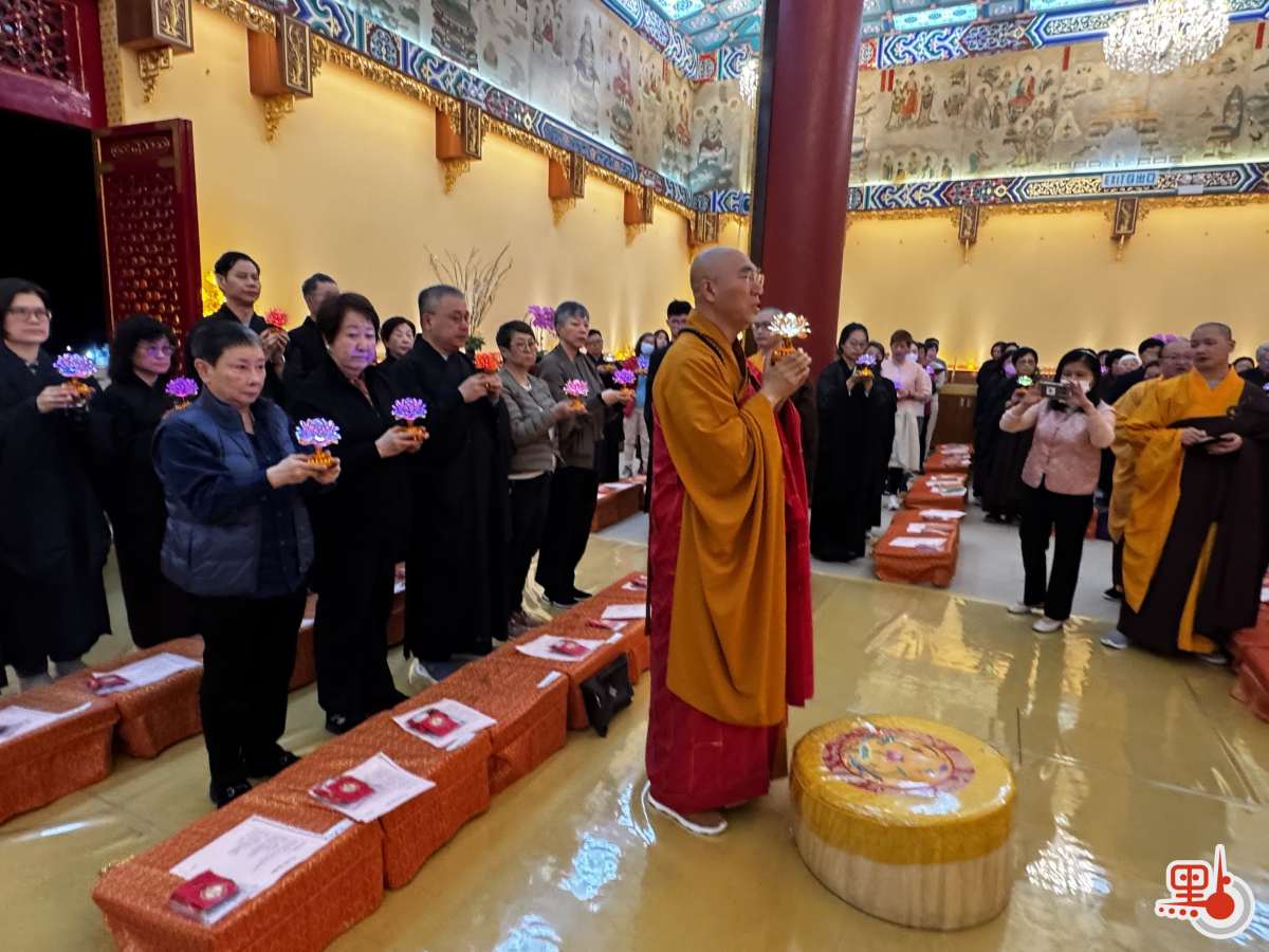 隨後,寬運大和尚帶領大眾進行普佛、誦經,以此功德迴向世界和平、香港繁榮安定。隨後舉行的蓮花燈亮燈儀式,寓意燈燈相續,願大眾的慈悲與智慧光明遍照,照亮自己,亦溫暖他人。