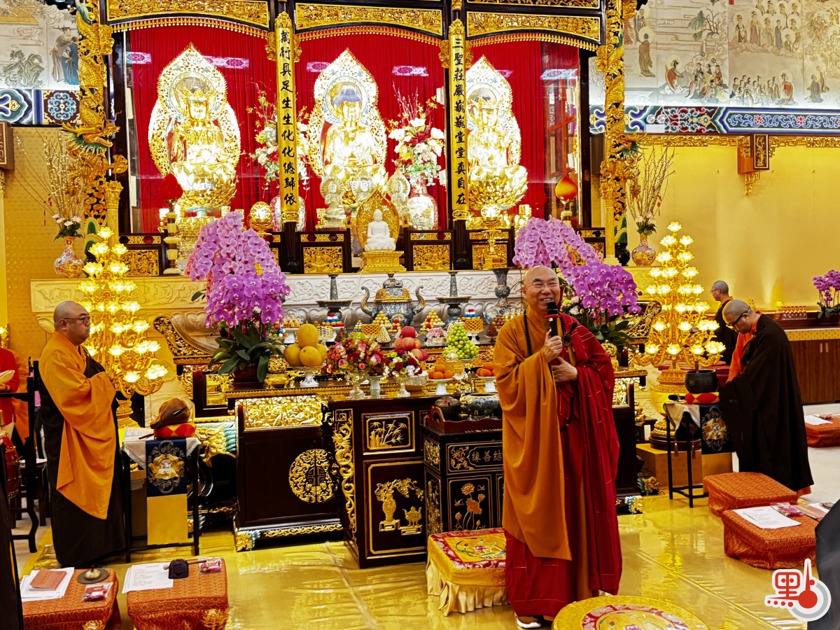 晚上10時15分,法會正式開始。全場信眾合掌靜心誦經儀軌。隨後,寬運大和尚為大眾慈悲開示,向現場信眾及香港市民送上新春祝福。寬運大和尚開示道:「在此送舊迎新之際,我們聚集在西方寺的大雄寶殿,願大家平安喜樂,以一顆清淨、祥和、喜悅的心。我們在這裏盛世鳴鐘,祈願世界和平,國家昌盛,香港繁榮,每一位都安居樂業,這就是我們大家的一個心願。」