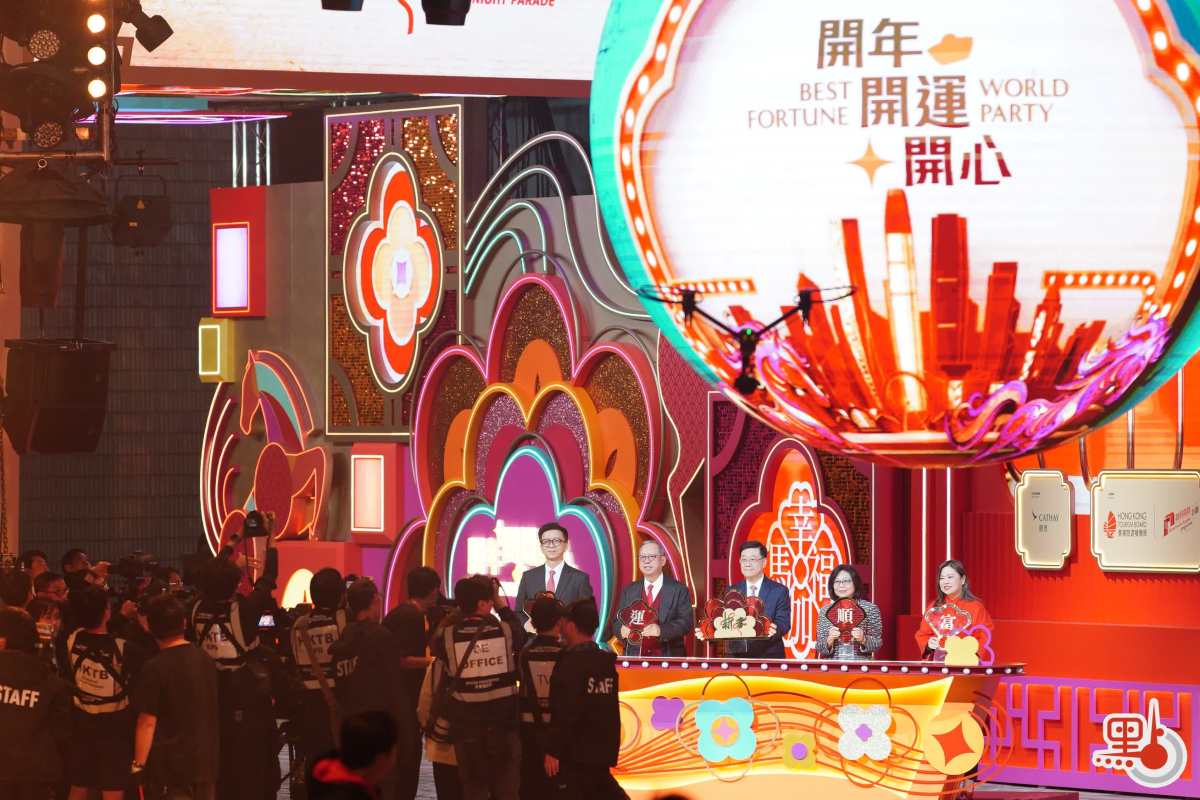 行政長官李家超、文化體育及旅遊局局長羅淑佩等出席活動。李家超在現場分別以粵語、普通話和英文三語向現場觀眾送上祝福,祝大家在新一年「福星高照、馬到功成」,並寄語新一年的香港「氣勢如虹、經濟發展全速奔馳,各行各業一馬當先,家家戶戶幸福美滿,歲歲年年如意吉祥」。