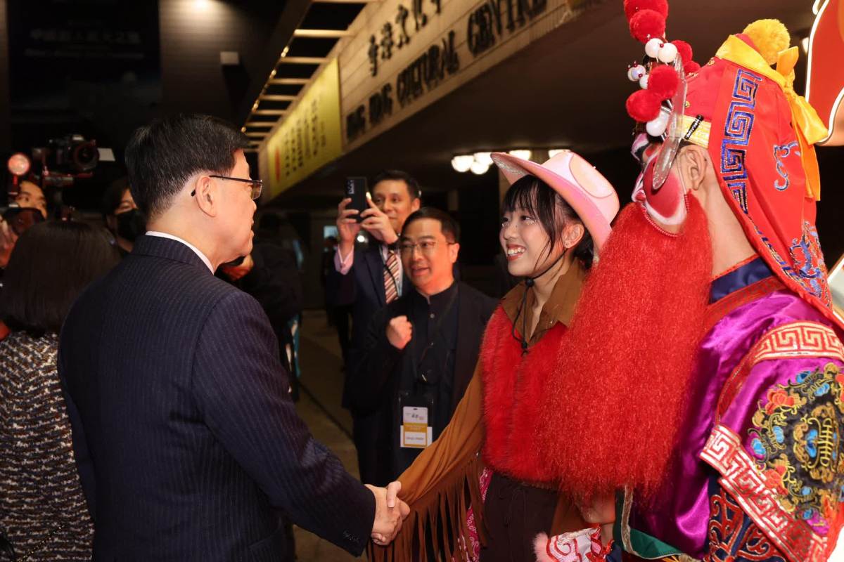 【點新聞報道】大年初一(17日)晚上,行政長官李家超和夫人到尖沙咀出席「新春國際匯演之夜」。欣賞表演前,他和部分表演團隊代表見面,並送上馬年祝福,感謝他們為香港帶來這場視聽盛宴。