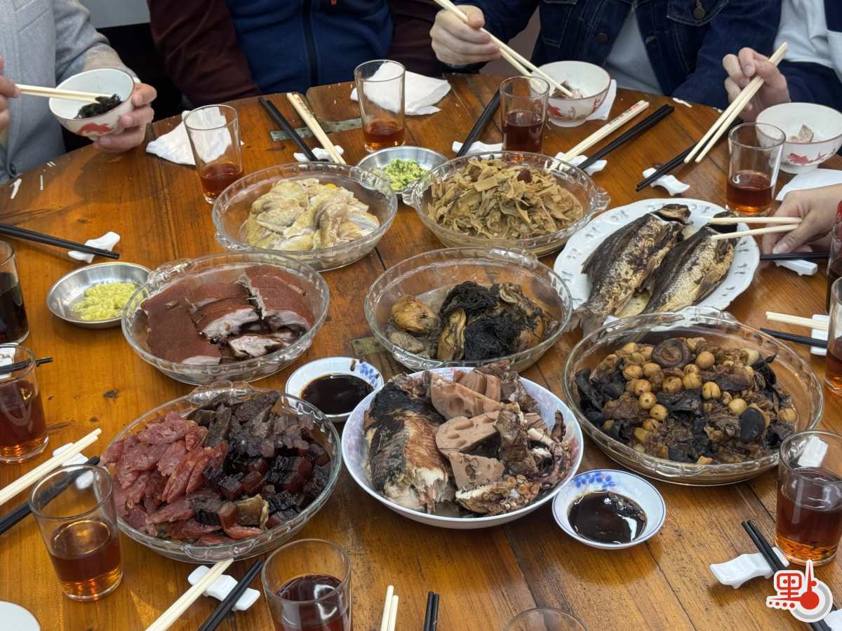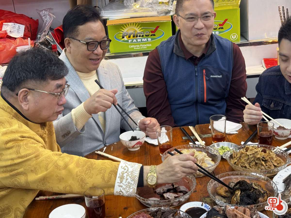 踏入正午12時,吳偉鴻及妹妹吳蕙玲,與家人及主圍12名員工共同舉杯,齊齊起筷。今年的開年飯一如既往地豐盛,延續了「八餸一湯」的傳統菜單,包括寓意喜氣洋洋的乳豬、象徵「發財好市」的髮菜蠔豉、傳統齋菜、切雞,以及寓意「撈起」、風生水起的炒旬蝦等。吳蕙玲表示,這份菜單由父輩一代代傳承下來,形容是「50年不變」。