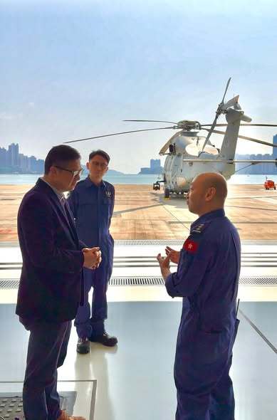 鄧炳強亦有到啟德消防局及政府飛行服務隊分部探班,感謝他們24小時候命,一旦有緊急事故,消防車及直升機隨時出動,守護生命財產。他表示,新年是團聚的日子,因為有專業又敬業的人員,飛天遁地默默守護大家,市民才可安心又開心地過新春假期。