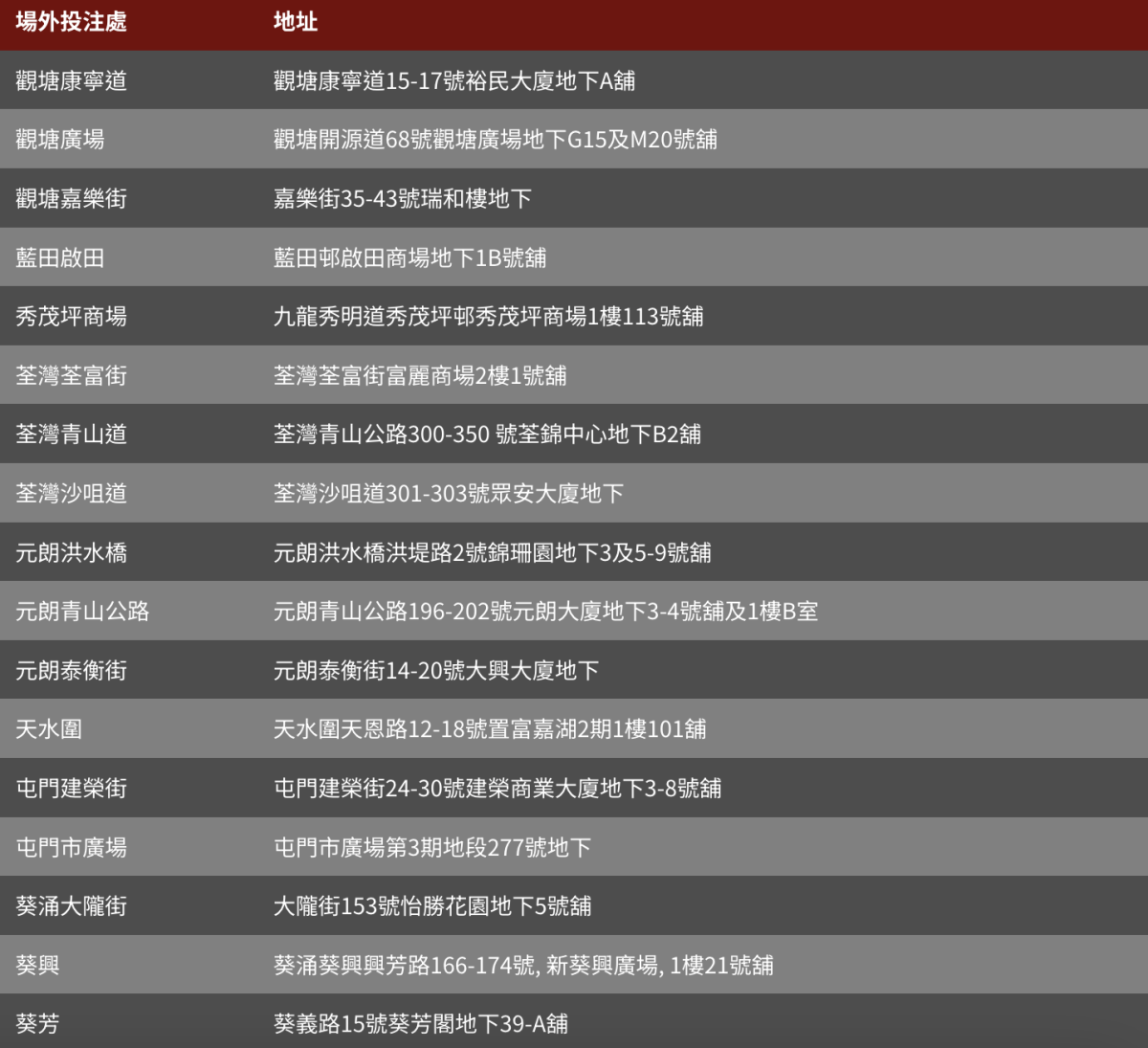 上車點:元朗、天水圍、屯門、荃灣、葵芳、觀塘