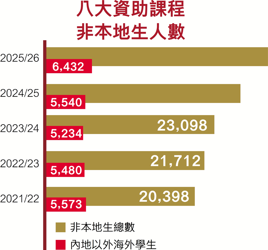香港致力吸納全球優秀學生,非本地學生上限接連放寬到四至五成,本學年八所資助大學非本地生人數突破3萬;其中內地以外的海外學生亦達6432名,創出歷史新高,突顯香港的國際化教育特色。