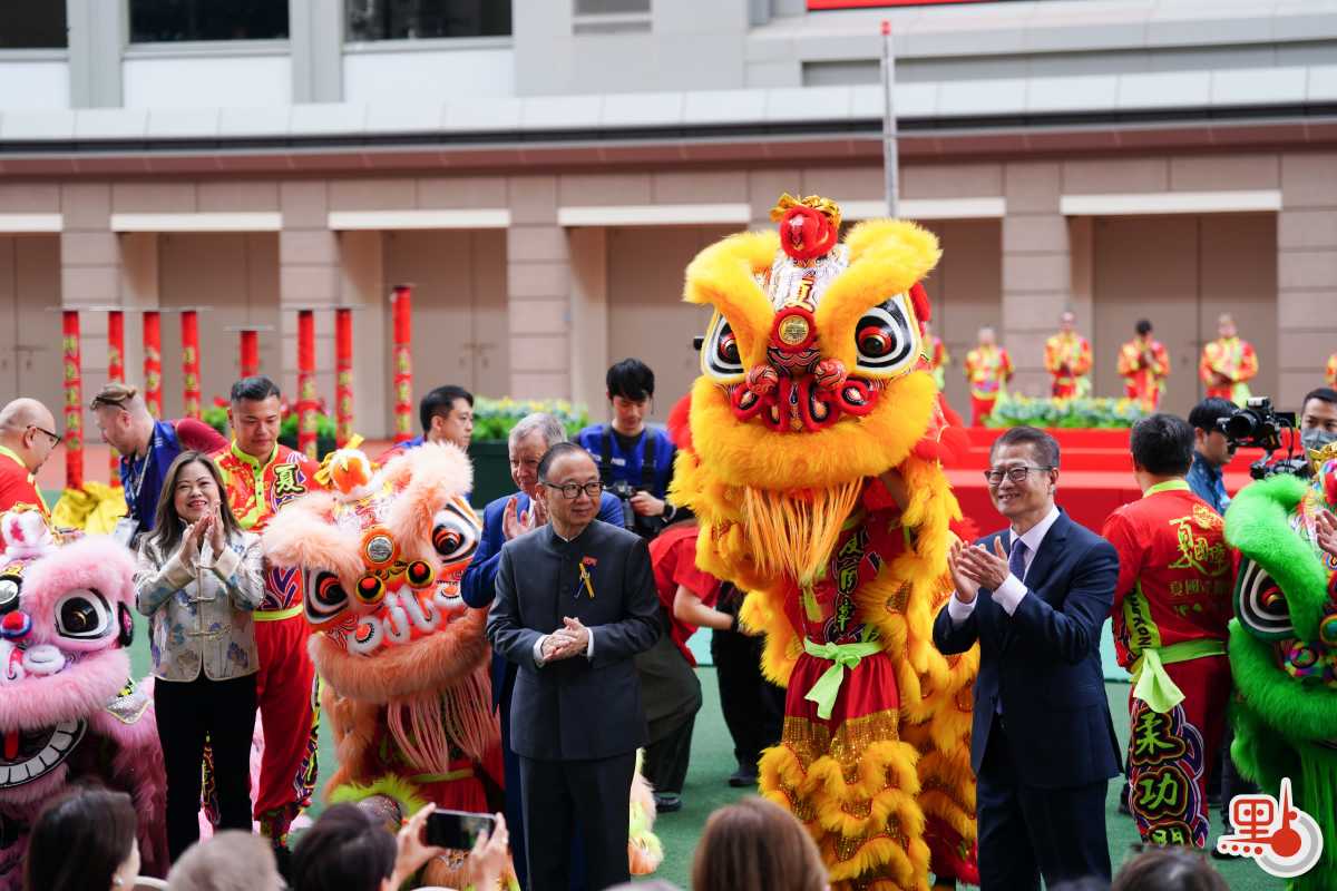 現場還有醒獅及騎師拜年環節,一眾市民和遊客早早到場排隊入場,期待同慶馬年新春,祝願馬年行大運。
