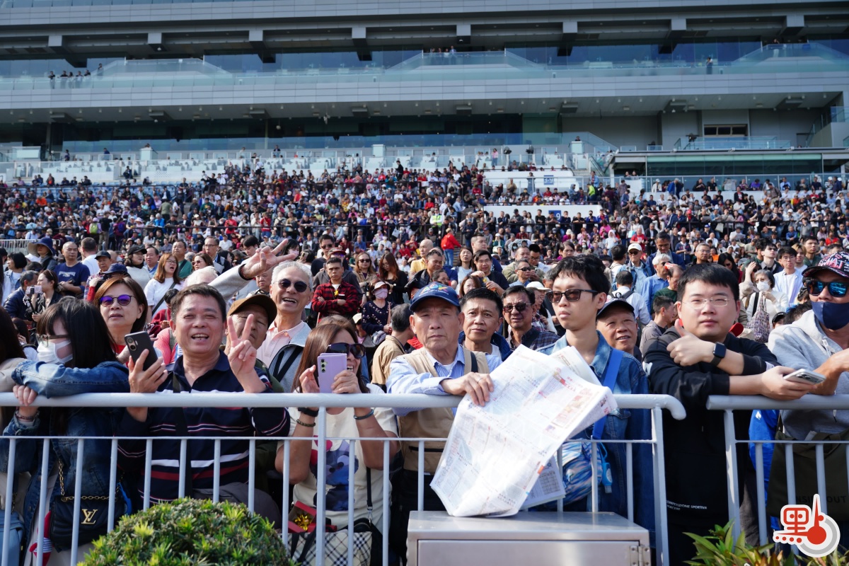 郭富城向旅客推介賽馬活動,他指今日現場人山人海,不僅有馬迷,更有一眾市民和旅客入場,體現此地的過年氣氛最熱鬧,「是很開心的事,證明有很多旅客來香港遊玩和消費」。
