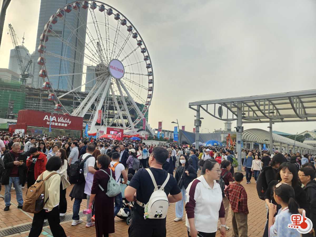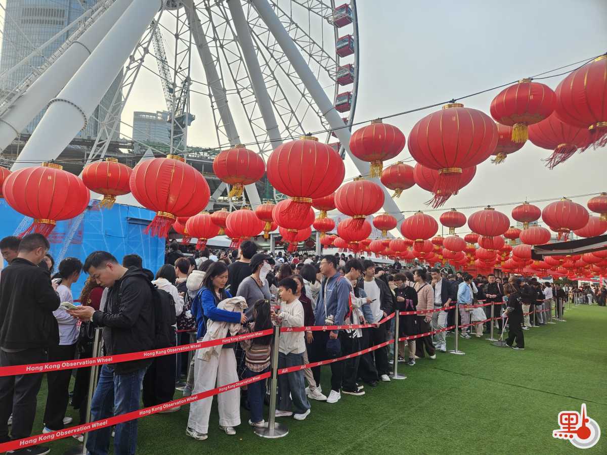 【點新聞報道】今日(19日)是大年初三,許多市民紛紛外出歡度新年。下午4時許,點新聞記者在中環摩天輪看到,現場排起長龍,輪候隊伍長得望不到盡頭。