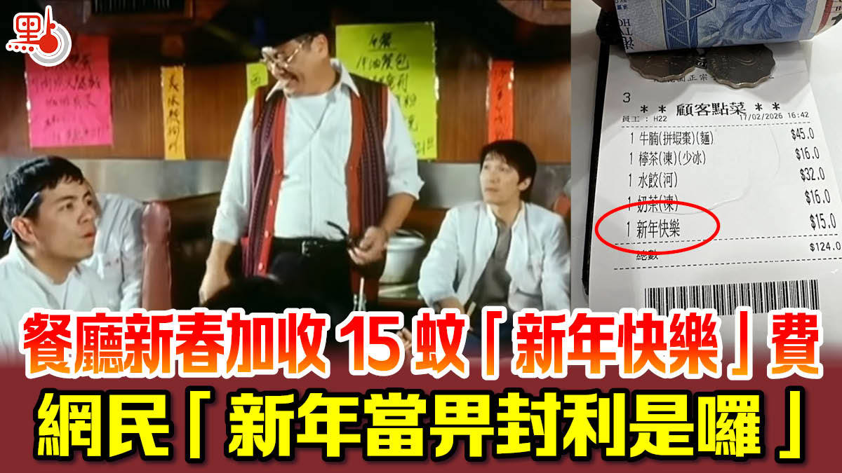 有食客於社交平台上傳單據相片,表示「15蚊1個恭喜發財,大年初一係咁」。從樓主上傳的單據相片中可見,樓主當日下單了牛腩麵、水餃、檸檬茶及奶茶等食物,最後一項費用列明「新年快樂」收費15元,整單共計124元。