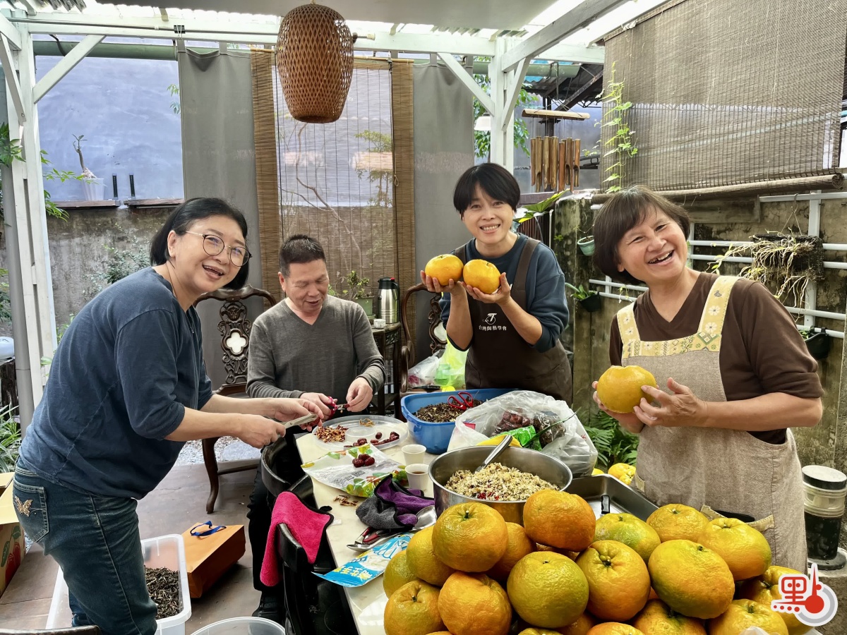 那天,大家你一言、我一語地教我怎麼塞茶、怎麼轉動果皮,怕我用力太重把果殼捏破,又怕我下手太輕塞得不夠實在。讓我記住的,倒不是每一道工序,而是那種「把陌生人也算自己人」的自然。