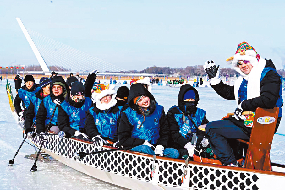 【點新聞報道】「我們在康河上划船是傳統,但在中國的冰河上划龍舟還是第一次,是一次超棒的經歷!」松花江冰封的江面上,由哈爾濱工業大學主辦的「哈工大—劍橋—牛津(哈劍牛)盃」冰上龍舟國際友誼賽扣人心弦。來自劍橋大學的學生愛德華·湯森德興奮地告訴香港文匯報記者,「英國的最低氣溫也就零下5攝氏度左右,而這裏是零下20多攝氏度。冰上划船磨煉了選手的體育意志,更是團隊精神的試煉。」