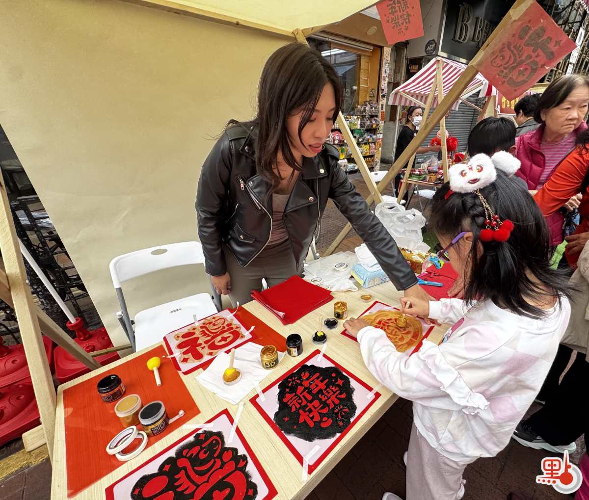 除了科普教育,現場亦有不少具年味的攤位。小朋友可以親自製作沙畫,完成後更可獲得一幅燙金門對,將新春祝福帶回家中。