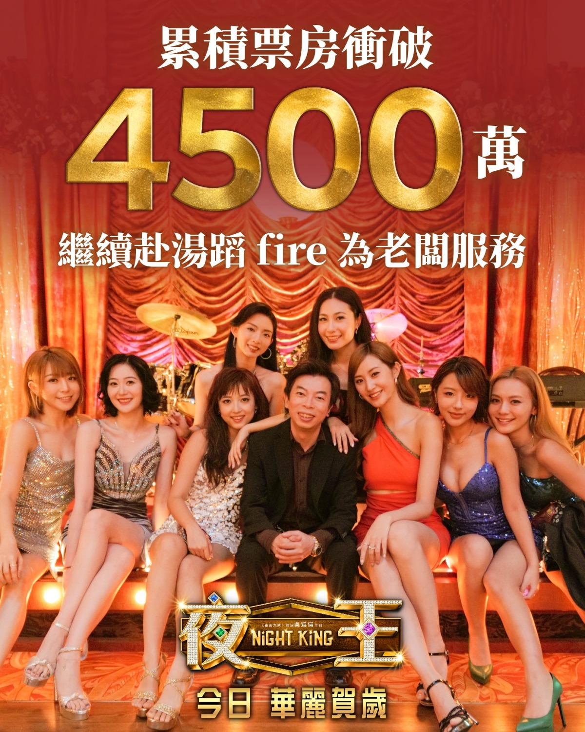 【點新聞報道】由吳煒倫執導、黃子華與鄭秀文主演的賀歲片《夜王》,自上映以來票房氣勢如虹。截至今日(2月22日)下午5時,《夜王》票房已衝破4500萬。