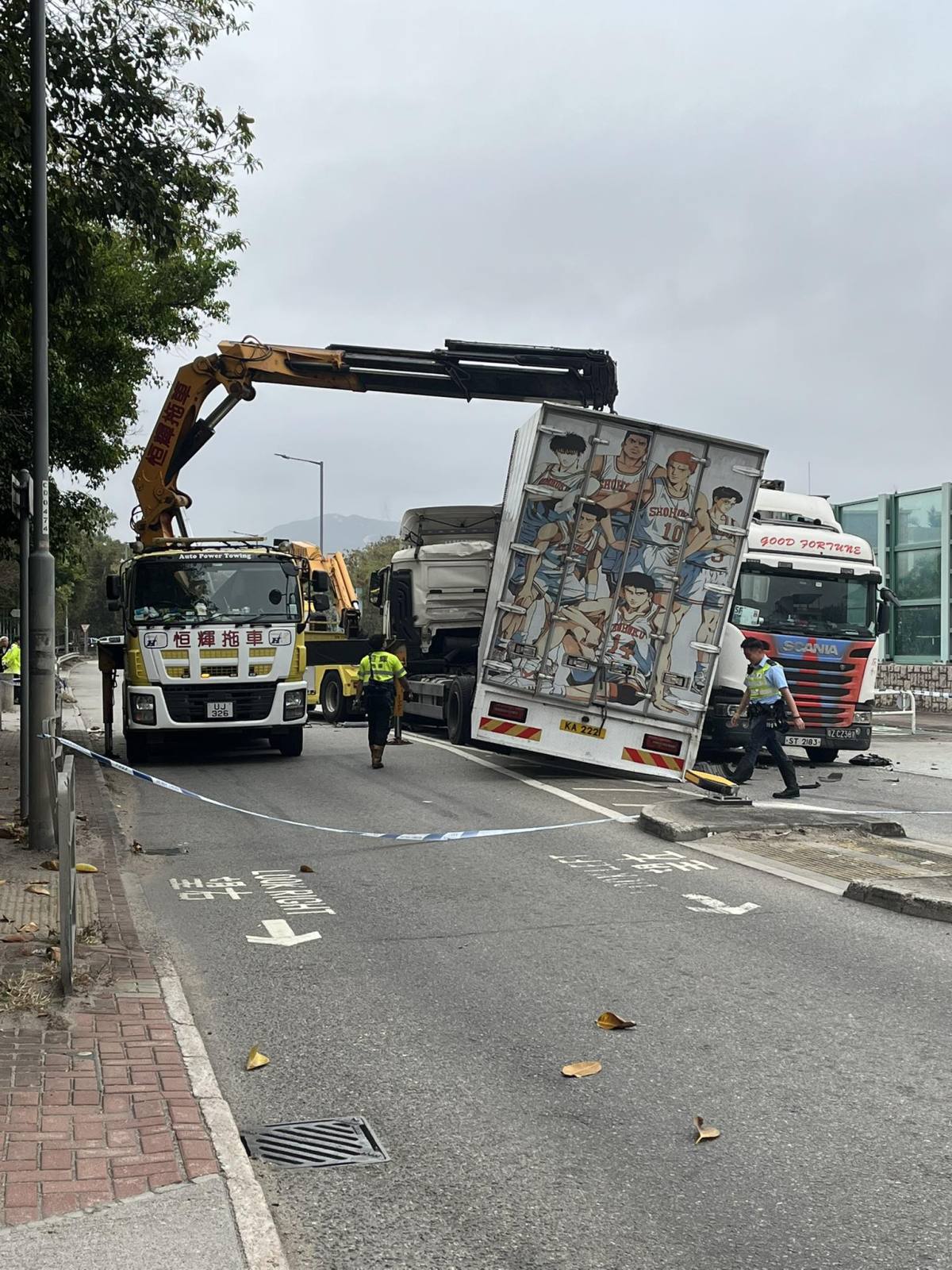 【點新聞報道】今日(24日)凌晨5時許,一輛中型貨車沿天水圍屏廈路往北行,途至羅屋村附近時懷疑越線,撞向對頭線一輛拖頭。貨車司機一度被困車內陷入半昏迷狀態,消防人員趕抵現場後將司機救出,並將其送往屯門醫院搶救。警方正調查車禍成因。