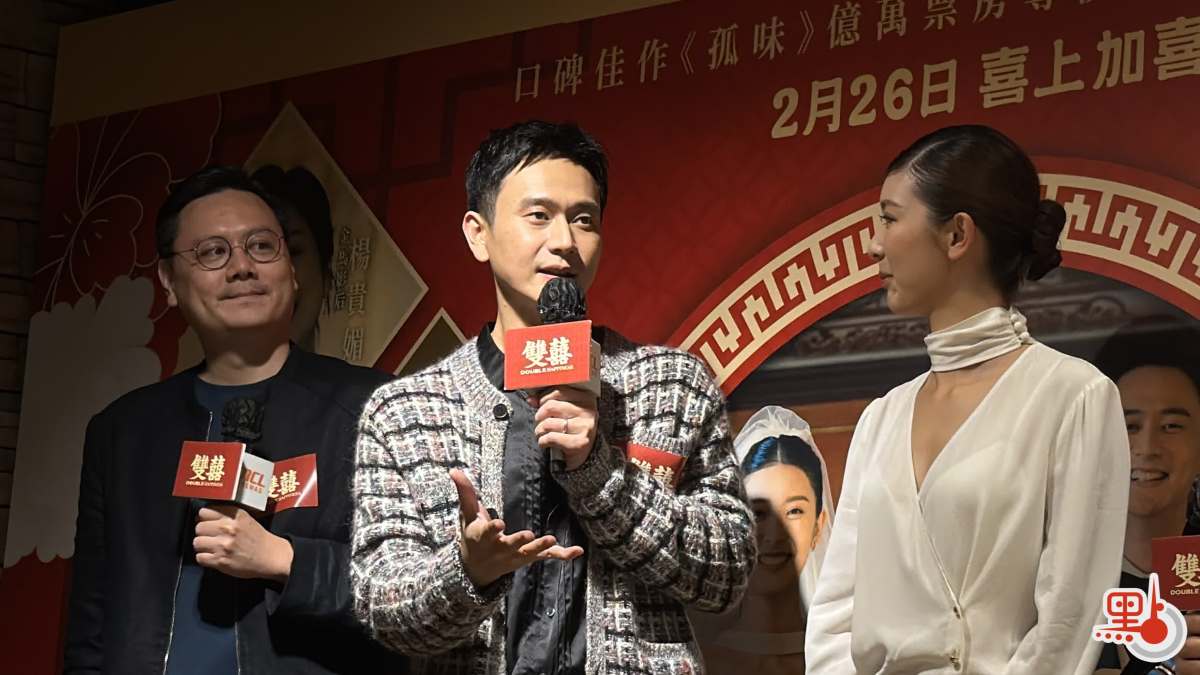 【點新聞報道】電影《雙囍》由《孤味》導演許承傑編劇及執導,由劉冠廷、余香凝、楊貴媚、田啟文等擔綱演出。《雙囍》香港首映禮今日(24日)舉行,許承傑攜手主演劉冠廷、余香凝及田啟文現身首映禮,與現場嘉賓分享拍攝感受,在劇中飾演夫妻的劉冠廷與余香凝更在現場互相比心,盡顯甜蜜。