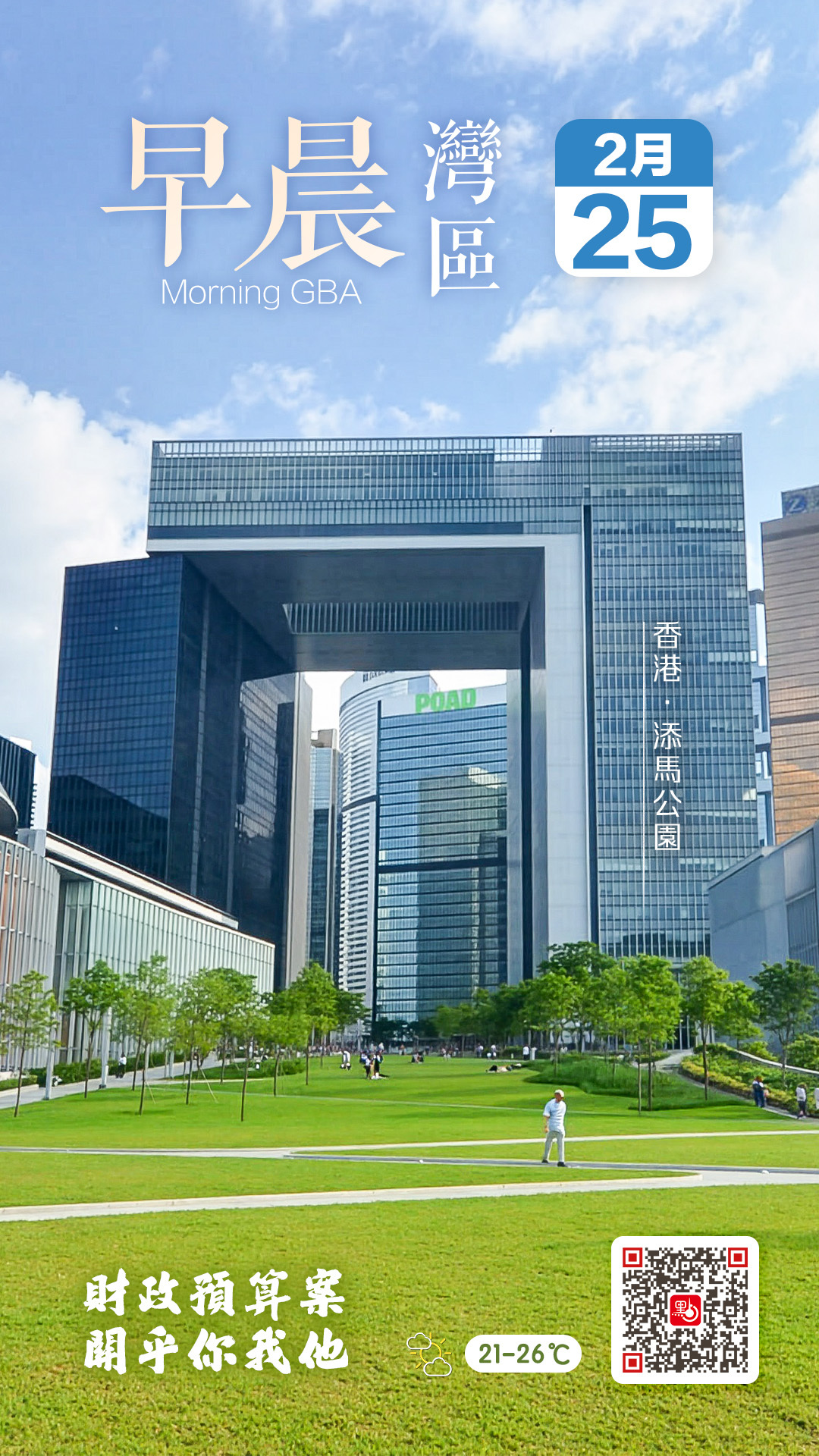 除了備受市民關注的財政預算案,今日點新聞還為讀者介紹一個港人熟悉的景點——添馬公園。位於金鐘夏慤道的添馬公園,是添馬艦發展工程的一部分,佔地約1.76公頃,毗鄰政府總部及立法會綜合大樓,自2011年10月起開放供市民使用。