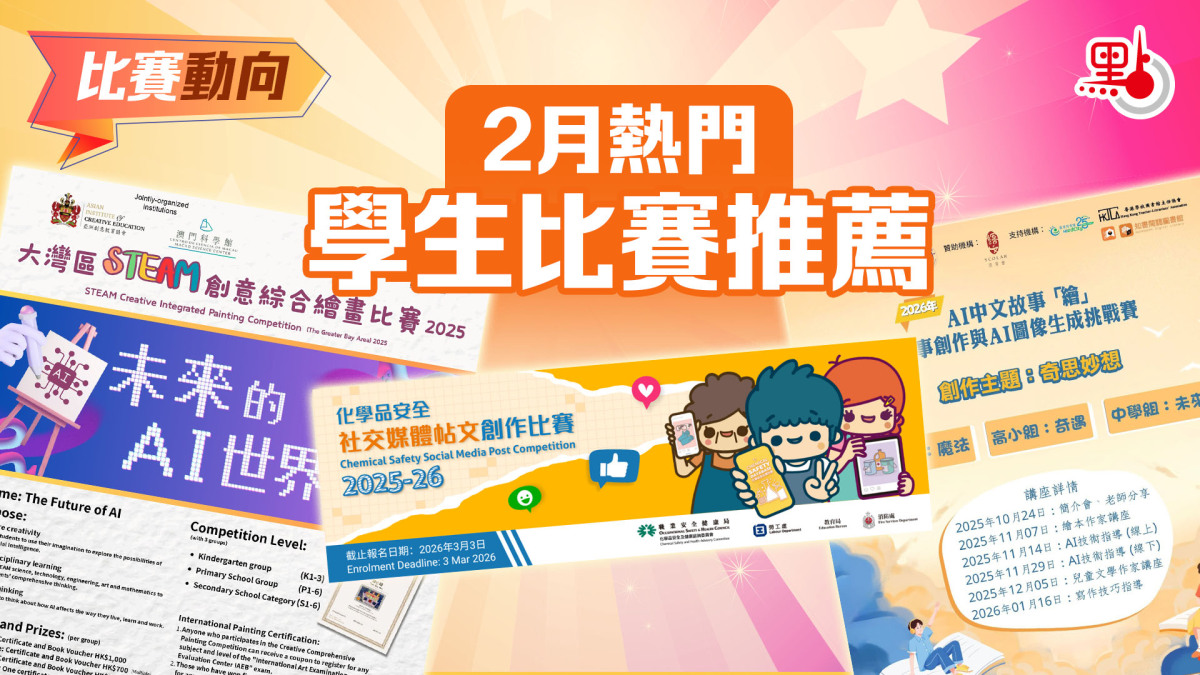 【點新聞報道】新年假期結束,各位同學重返校園,除了馬不停蹄投入日常學習,也正是參加各類比賽,在實踐中提升創意、解難、跨學科思維等綜合能力的好時機。點教育精選3項近期截止報名的學生比賽,涵蓋STEAM繪畫、AI故事創作及化學品安全宣傳等範疇,助同學發揮潛能,拓闊視野。
