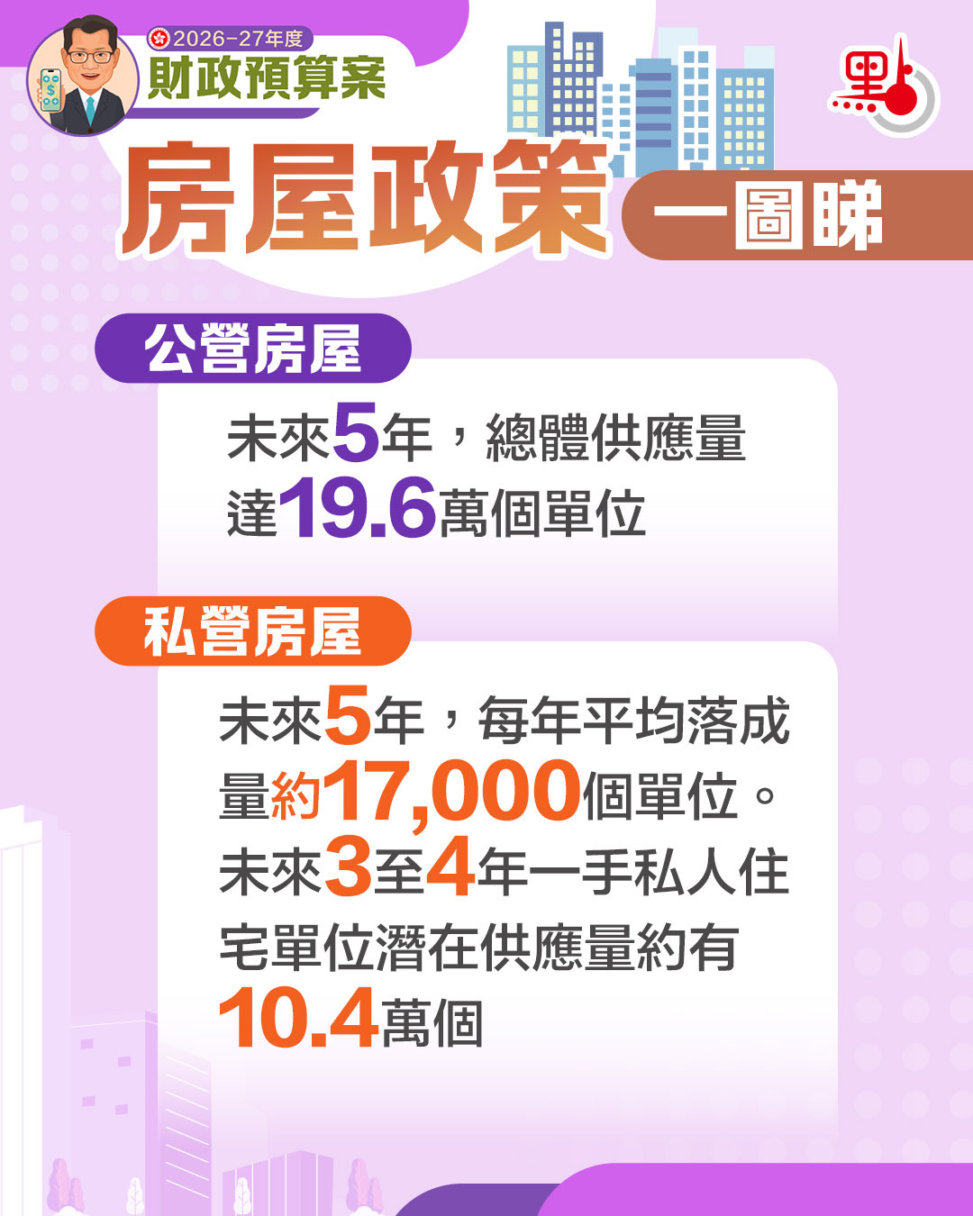 【點新聞報道】財政司司長陳茂波今日(25日)發表新一份財政預算案。本年度派糖力度較上年度大,包括寛減2025/26年度首兩季住宅及非住宅物業差餉,以每戶500元為上限,較去年多一個季度;寬減2025/26年度百分之百的薪俸稅和個人入息課稅,上限3000元;至於綜援、生果金、長生津等,亦由去年的「半糧」增至發放額外1個月金額。此外,基本免稅額及單親免稅額由13.2萬元增加至14.5萬元,子女免稅額及額外子女免稅額亦由13萬元增加至14萬元。新一份財政預算案都有哪些要點?快來多圖睇清!