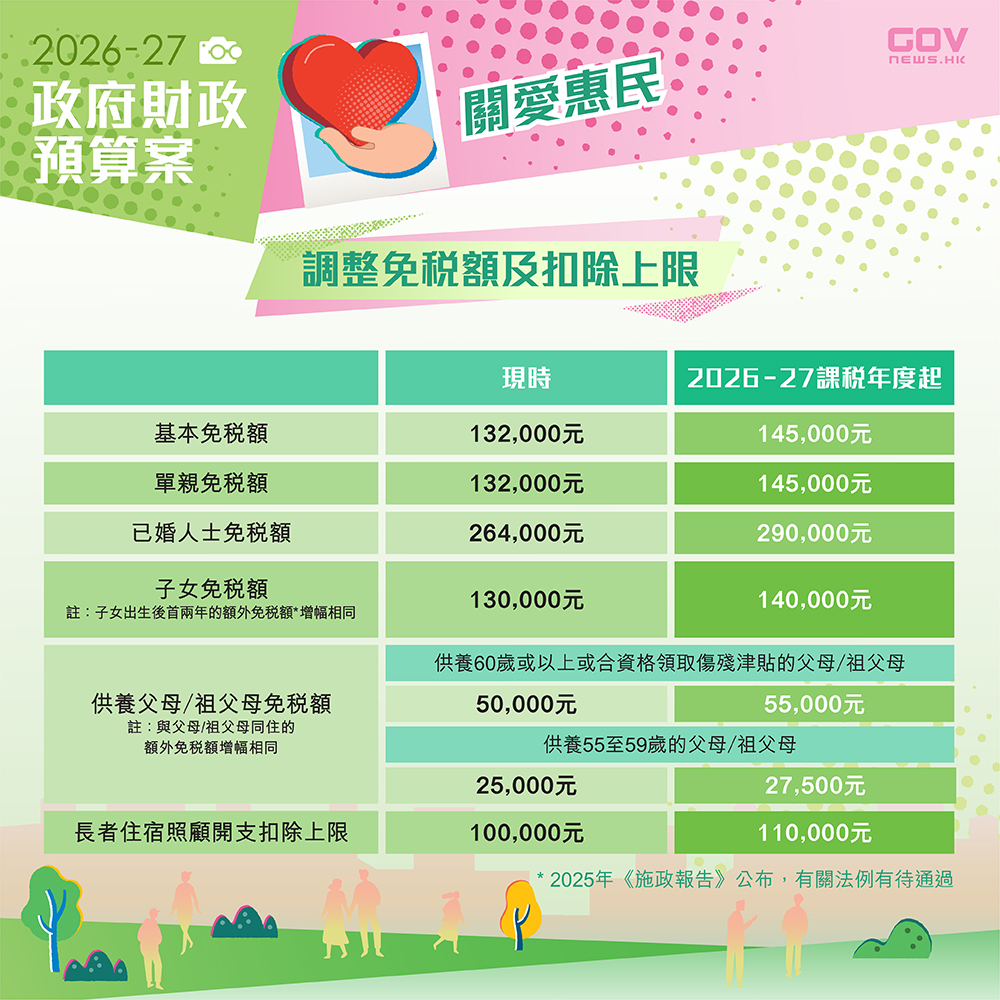(有片)預算案|基本免稅額升至14.5萬 子女免稅額升至14萬
