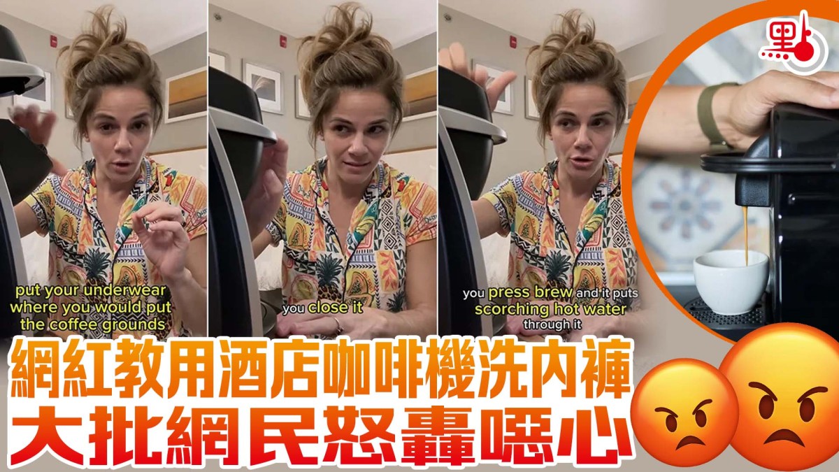 【點新聞報道】一名外國網紅伍德考斯(Tara Woodcox),竟拍影片教用酒店咖啡機高溫清洗髒內褲,影片引發大批網民怒轟噁心。