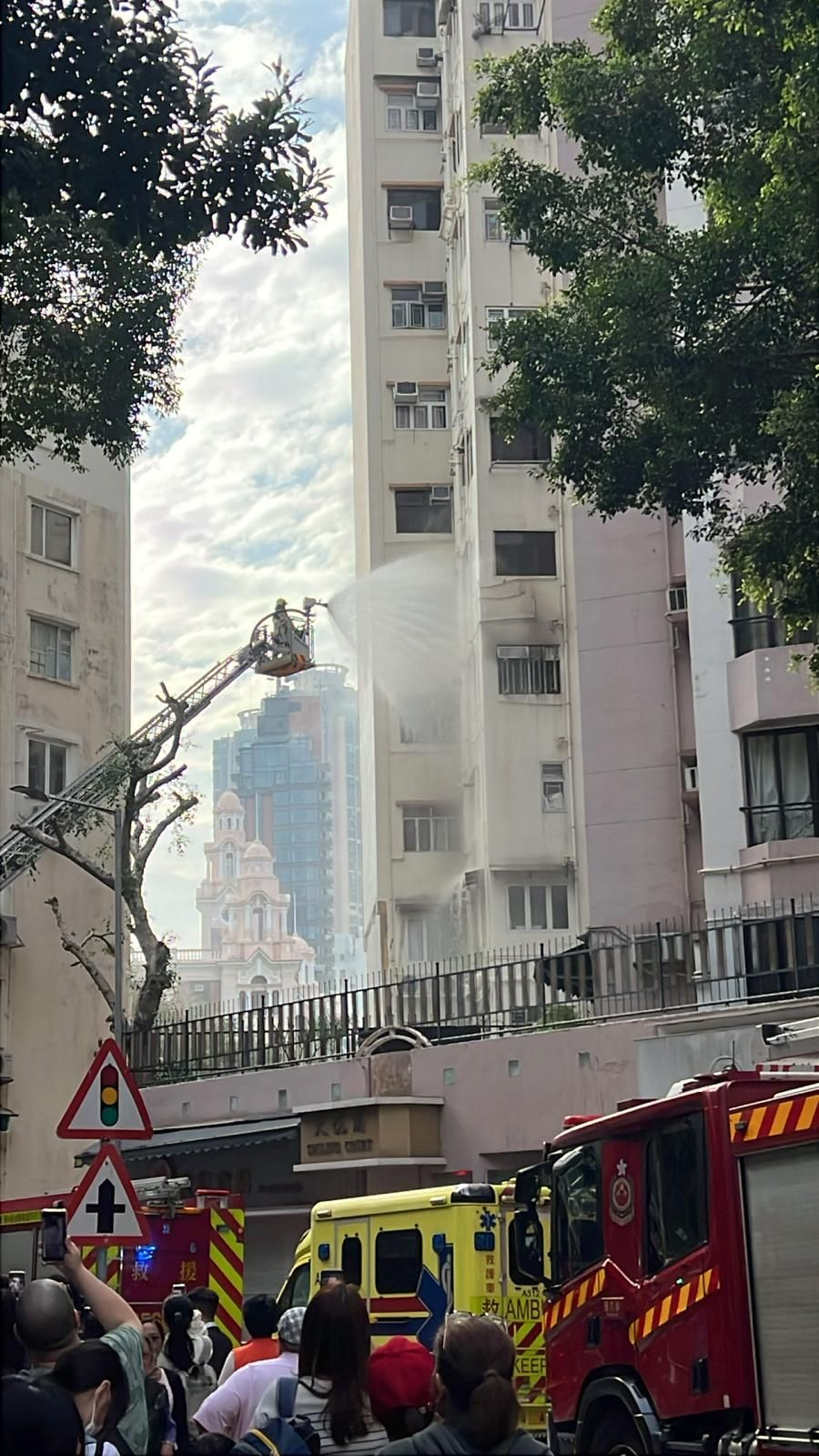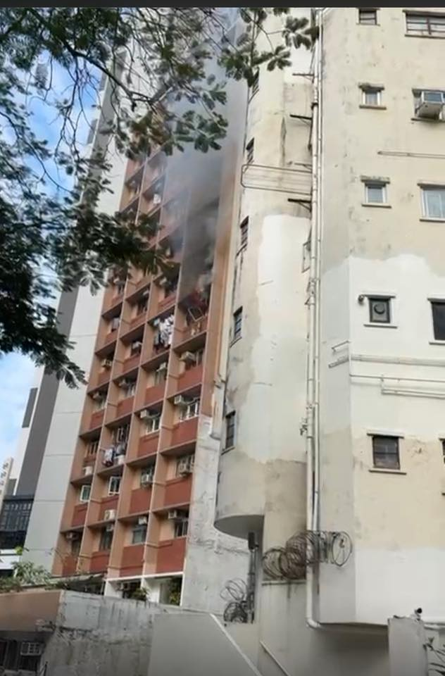 【點新聞報道】今日(25日)下午約3時半,警方接獲多個報案,指西營盤興漢道3至4號美興樓,一單位的冷氣機着火,消防升起雲梯,動用一條喉及一隊煙帽隊灌救。據報有住戶逃到天台暫避;亦有人報案指,大廈內有長者被困單位待援。