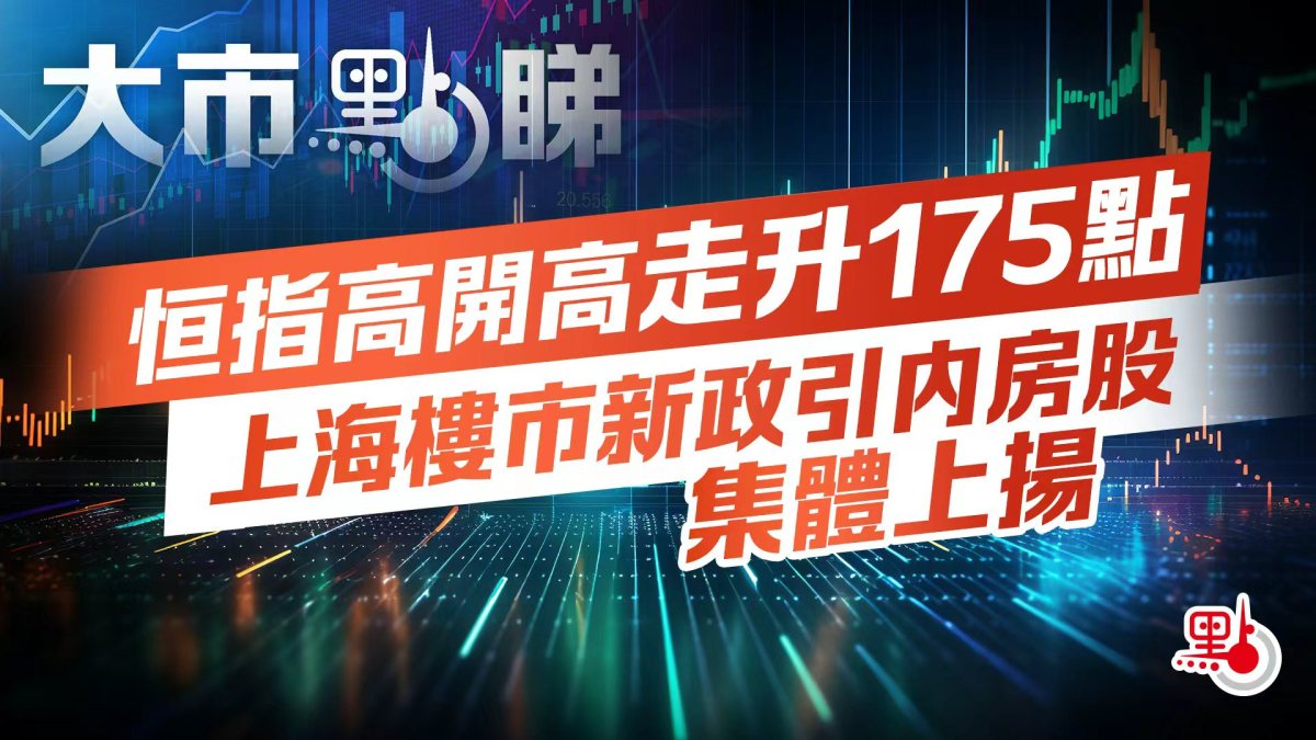 上海住房城鄉建設管理連同市財政局、市稅務局,及市公積金管理等齊發出通告,推出多項放寬及優化的政策,當中包括下調房屋限購、縮短納社保或個稅年期,及合條件可增購房屋等。該消息刺激在港交所內的內房股造好,整體升幅約在4%至6%。