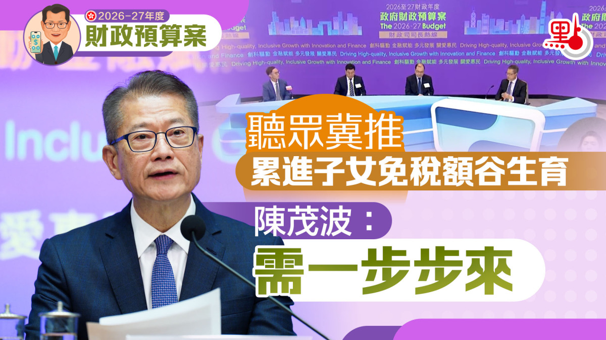 陳茂波表示,政府一向鼓勵生育,除預算案提及的子女免稅額外,在各方面都有支援。而在本次預算案中,無論子女免稅額、個人免稅額及供養父母免稅額,都有提升,「幅度亦不小」。他指,「這筆數令政府庫房少收幾十億元收入」,希望市民諒解財政剛剛改善,政府亦會在力所能及範圍支持,「能做盡做」。