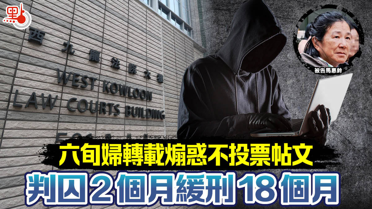 【點新聞報道】61歲家庭主婦涉於去年立法會換屆選舉期間,於網上轉載一則由「指明潛逃者」湯偉雄發布,煽惑他人杯葛該場選舉的原始帖文,昨日(25日)在西九龍裁判法院承認控罪。裁判官余俊翔指被告所犯罪行性質嚴重,即使她轉發前沒有深思熟慮,法庭亦不能忽視帖文經轉發後所引致的嚴重後果,遂判囚2個月,但考慮認罪及其他求情因素,准緩刑18個月。