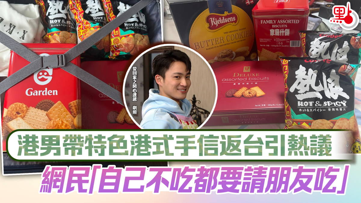 該港男於社交平台上傳相片,並配文「今晚飛返台灣,班台灣朋友仲未意識到佢哋要面對乜嘢」。從其上傳的相片中可見,行李箱裏裝有幾包熱浪薯片和香港人的童年回憶-「嘉頓家庭什餅」和「嘉頓特級什餅」。