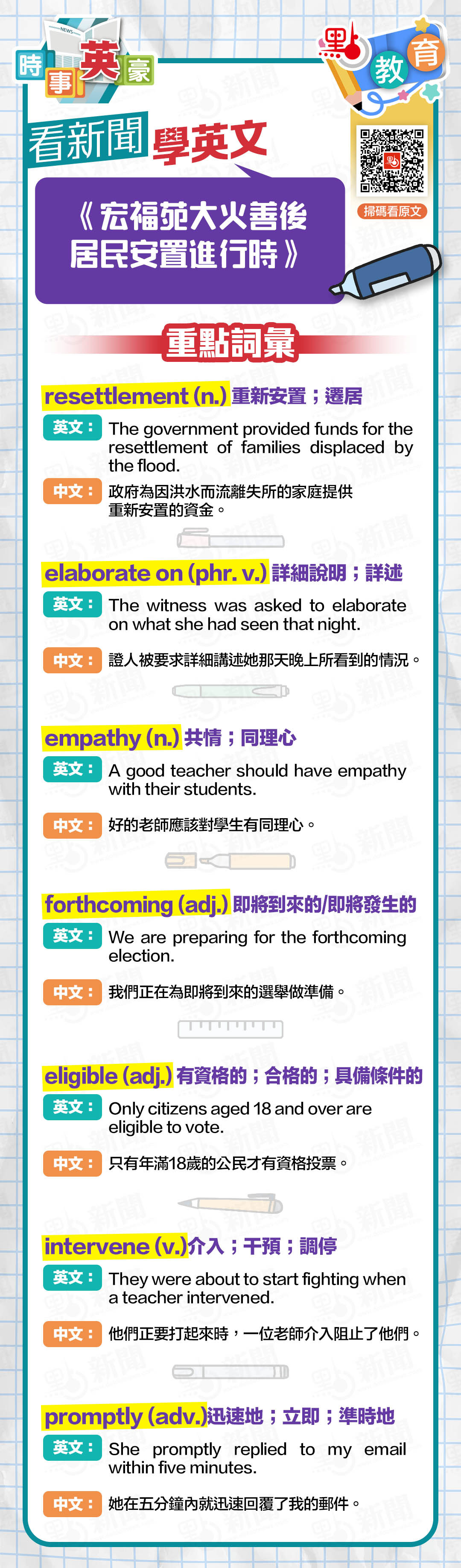 The SAR government announced a long-term resettlement plan for owners affected by the fire at Wang Fuk Court, proposing to acquire the ownership of seven blocks through cash payments or a "flat-for-flat" scheme.