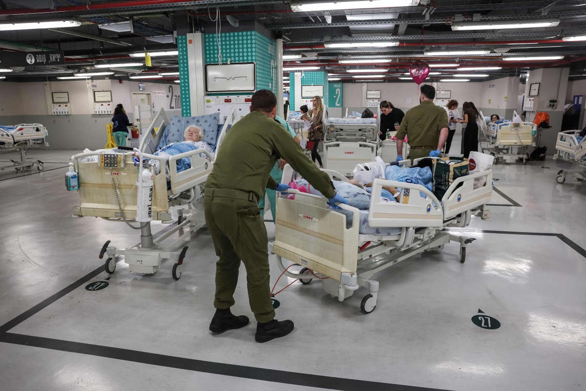 特拉維夫警報響起後,一名男子抱着兩個孩子奔跑尋找避難所;與此同時,安全人員在蘇拉斯基醫療中心停車場迅速轉移病人,確保其安全。在海法,兩名婦女在以色列空襲伊朗後警報響起時站在避難所內避險。警報聲中,多個家庭匆忙趕往避難所,特拉維夫街頭隨處可見奔跑尋找掩體的人群。