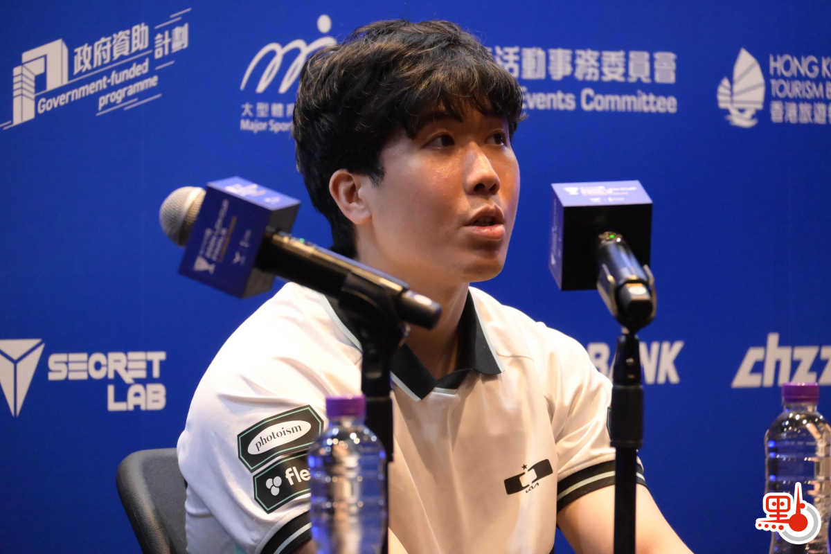 賽後採訪中,DK教練Cvmax與隊員Lucid接受媒體採訪,總結今場比賽表現並展望未來。談及首次來港參賽的感受,Cvmax表示,這是他第一次在香港出戰賽事,對場館規模與現場氣氛印象深刻,認為場地寬敞、觀眾反應熱烈,令他在賽前已充滿期待與興奮。Lucid則表示,雖然行程緊湊,未有太多時間外出,但整體比賽環境良好,對賽事安排感到滿意。