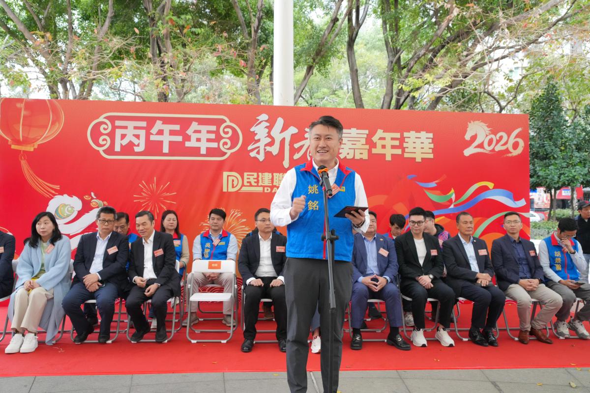 民建聯北區支部主席、立法會議員姚銘在致辭時表示,回顧過去一年,香港社會全面復常,經濟逐步向好,「大家落區時都見到,無論係商場、街市,以至係我哋北區各個角落,人流、車流、市道都明顯回暖,市面一片興旺景象。剛出爐嘅政府財政預算案更係帶來好消息,指出香港經濟連續三年增長,然而,外部環境仍然複雜多變,環球經濟前景充滿不確定性,地緣政治風險同加息周期等因素,都為香港帶來不少挑戰。特區政府一方面要審慎理財,做好財務管理,確保公共資源用得其所;另一方面要積極有為,抓緊機遇,推動經濟高質量發展。只有雙管齊下,先可以喺風浪中穩步前行,為香港開拓更廣闊嘅發展空間。」