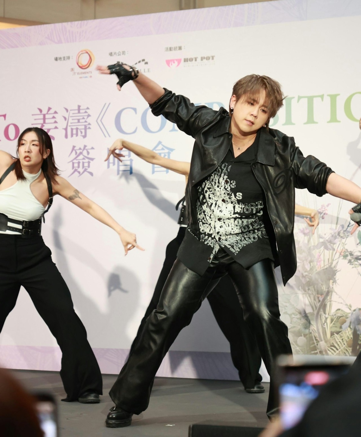 姜濤以一身黑皮褸、黑皮褲登場,甫出場即跳唱《LAVA》炒熱氣氛,引來台下粉絲尖叫。愛錫薑糖的他獻唱後氣也未喘便說:「知道你哋早幾日已經嚟排隊,下次唔使咁辛苦,路過支持嚇就得。」