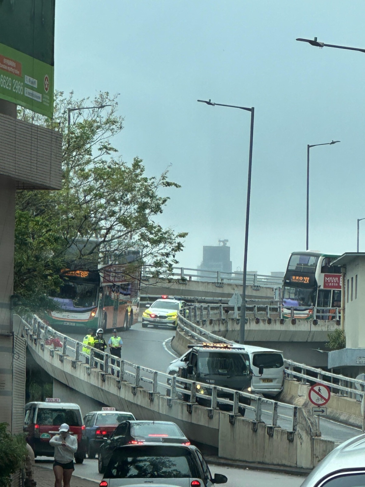 【點新聞報道】東區走廊發生交通意外。事發今早(3月1日)9時47分,一輛客貨車沿東區走廊往銅鑼灣方向行駛,近興發街支路落橋位時懷疑失控撞路壆,橫亘路中,據報涉事司機沒有受傷。惟事故導致交通嚴重受阻,多輛巴士服務受阻,大批乘客只得落車從橋面步行離開。
