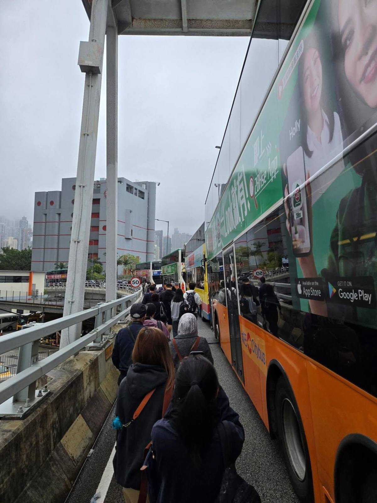 有網民在交通資訊群組分享多張東區走廊實況相片,可見大批乘客在橋面步行,人數目測近百人,有不少網民笑言今早有「東區走廊百萬行」,揶揄「公益金百萬行,起步點改為東廊橋面」「手牽手向前行」,更有人緊貼「時事」指是為響應渣馬分多日舉辦的倡議,形容是「新春馬拉松」「XX東廊步行日」。