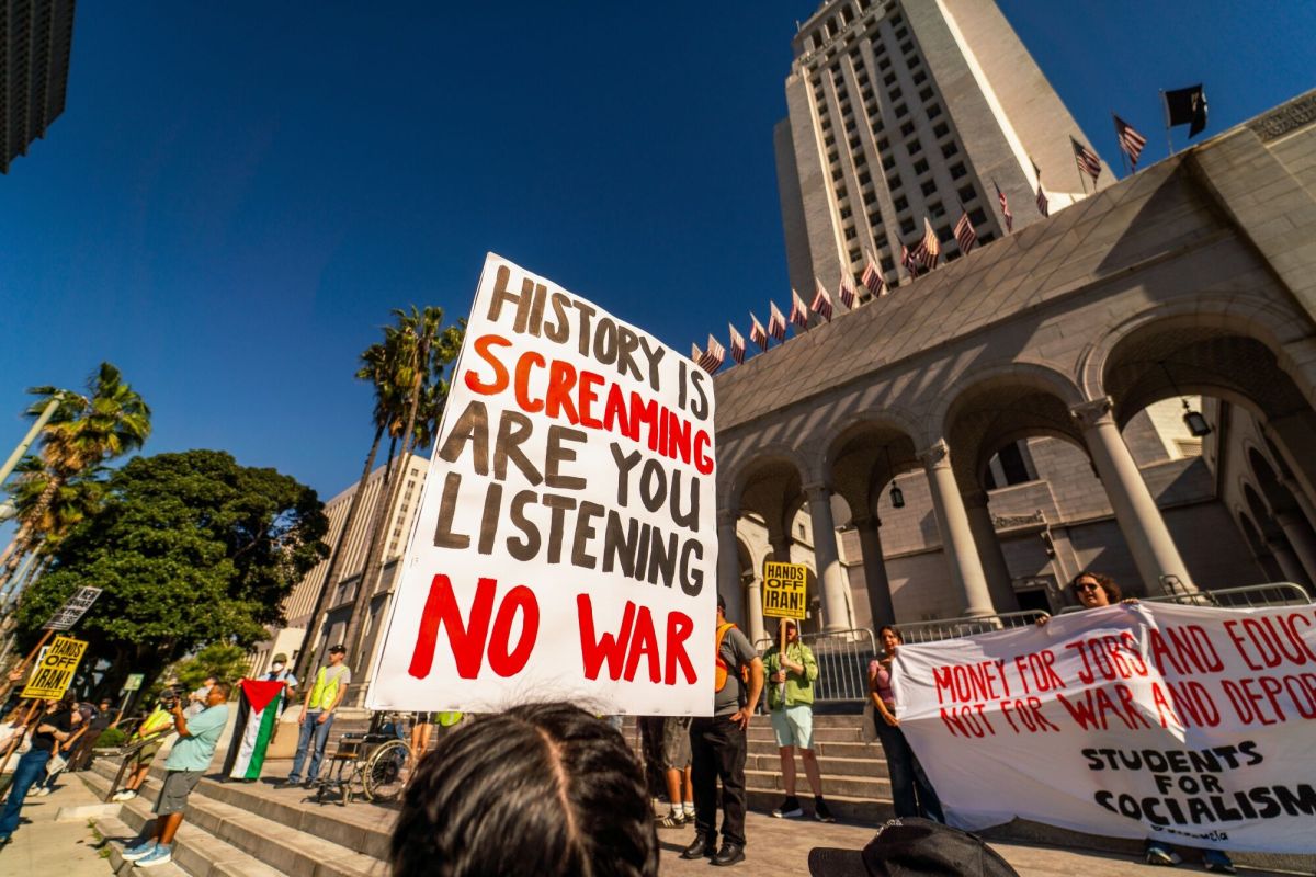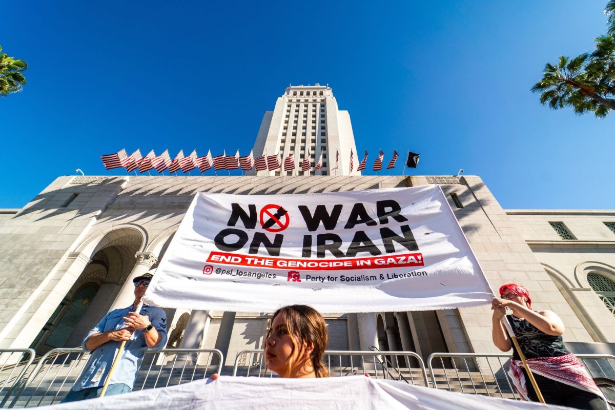 洛杉磯、休斯頓等多地民眾舉行示威遊行,抗議美國和以色列對伊朗發動軍事襲擊,呼籲立即停火。