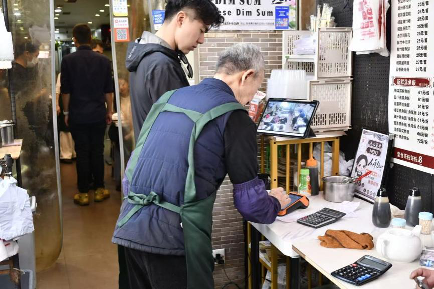 從警員轉行的年輕股東吳嘉偉亦從鄧鏡雄老人身上學到很多,「以前我唔系做服務行業,大佬(鄧鏡雄)教我對人要真誠、要禮貌,呢啲系用錢買唔到嘅經驗」。在繼承老人經營理念的同時,吳嘉偉也意識到老店想要存活下去,經營方式要能跟上時代的腳步。他加入金輝點心店後,陸續引進八達通服務、微信支付,同時優化中英雙語菜單,讓顧客的體驗更便捷。另外,考慮到店舖地點比較隱秘,內地赴港旅客尋找困難,吳嘉偉還開通了小紅書和大眾點評賬號,吸引更多內地遊客前來。