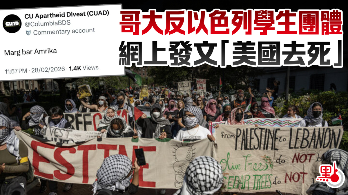 【點新聞報道】《紐約郵報》報道,在美國與以色列擊殺伊朗最高領袖哈梅內伊後,哥倫比亞大學最大的反以色列學生團體「CUAD」,28日在X平台上以波斯語發文「美國去死」(Marg bar Amrika)。