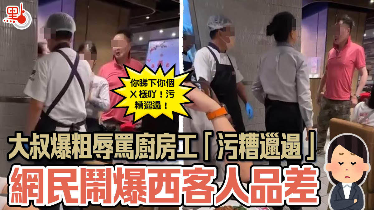 影片曝光後,網民紛紛鬧爆大叔的無理行為,「西客」、「人品差」、「人哋點污糟都唔夠你個口污糟!犯多啲口孽啦!一定有報應㗎!」、「如果無一班『污糟邋遢』嘅廚師,你出街真係連大便都無得你食,請尊重別人等如尊重自己」。