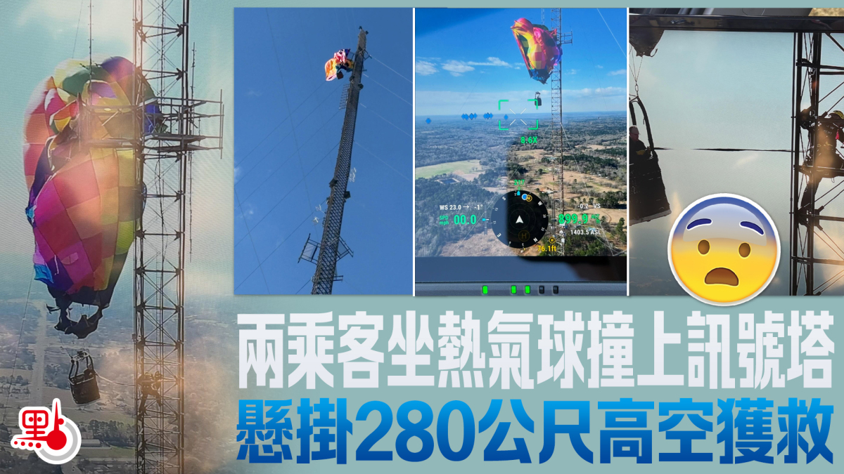 據外媒報道,朗維尤消防局於當地時間2月28日早上8時15分接獲報案,指稱有熱氣球撞上手機訊號塔後,卡在離地280公尺處。救援人員趕赴現場,花了一個多小時才爬上熱氣球高度救出兩名乘客。