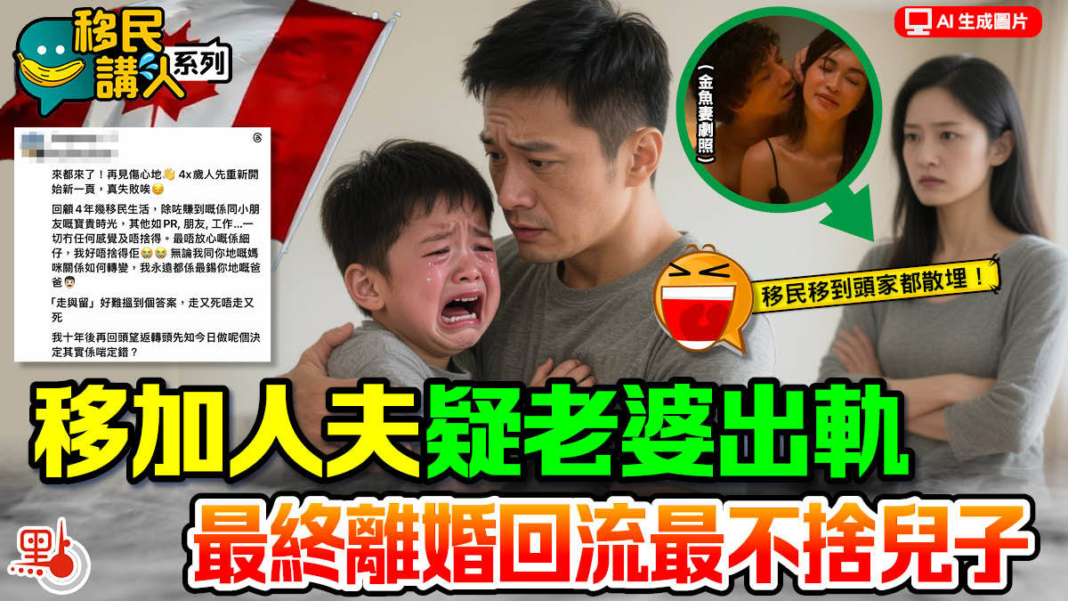 【點新聞報道】移民移到頭家都散埋!有舉家移民加拿大的港爸,經歷了四年移民生活,老婆疑似有外遇,更不斷冷言冷語、奚落他,最終落得離婚收場,並獨自一人回流返港。港爸坦言可以放棄一切,惟最放心不下小兒子,心情十分忐忑。