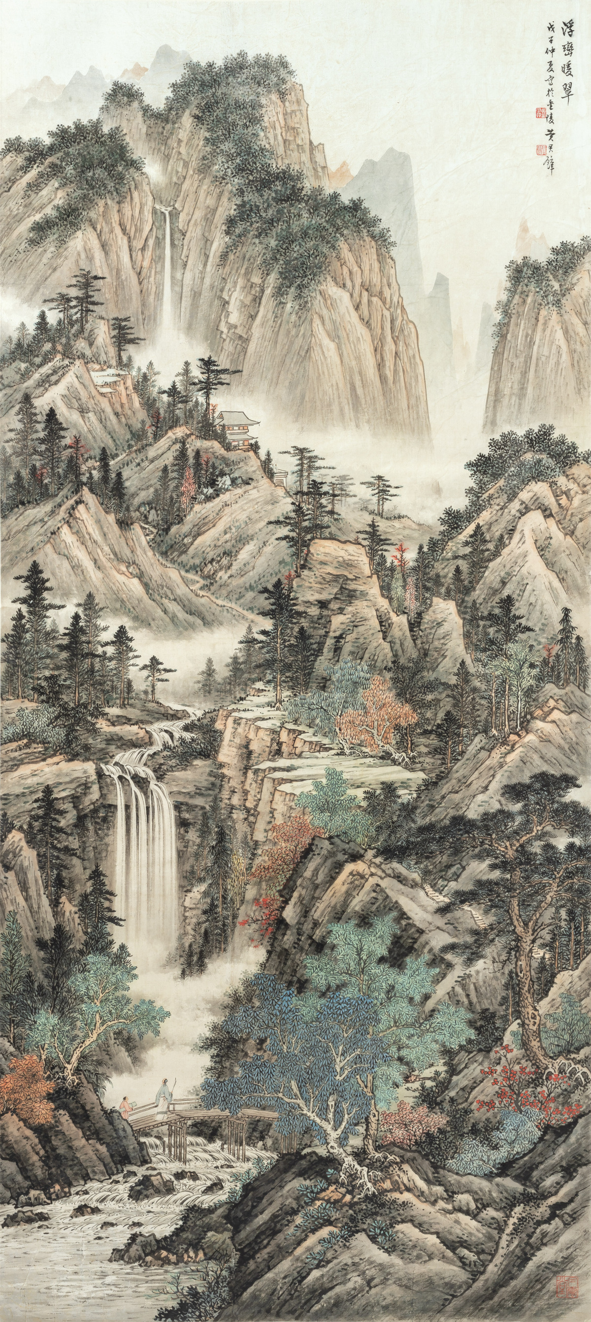 知名書畫家黃君璧於1948年的作品《浮巒暖翠》,此畫同為「一年景」單元的展品。