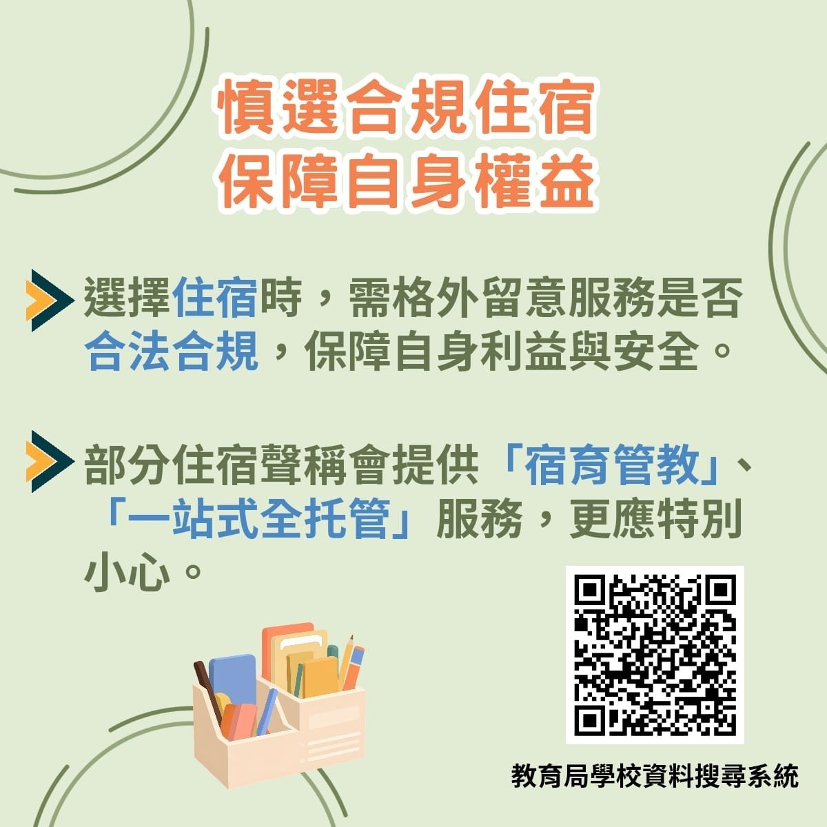 【點新聞報道】近日有部分住宿經營者透過「小紅書」、「微信」等社交平台,宣傳旗下經營的宿舍、宿舍公寓或學生公寓,部分更聲稱提供「宿育管教」、「一站式全託管」服務,然而涉嫌多處僭建及違規辦學。教育局局長蔡若蓮今日(6日)於Fb提醒各位留學生,在接受香港優質教育的同時,亦需慎選合規的住宿設施,保障自身權益。
