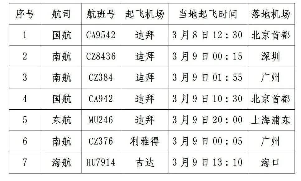外交部領事保護中心建議,滯留中東地區的中國旅客抓緊時間通過以下航班回國,可登錄各航空公司微信服務號或小程序購票。