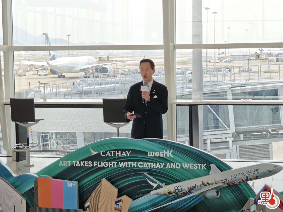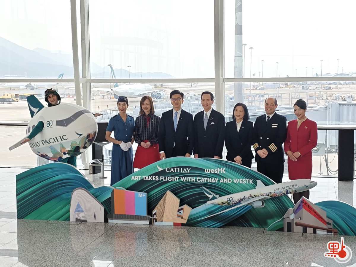 國泰集團行政總裁林紹波致辭指,為慶祝國泰航空成立80周年,集團特別與西九文化區管理局合作,將國泰航空客機化身「翱翔天際的畫布」,通過藝術塗裝展示香港藝術家設計的特色作品,「希望透過這架飛機飛往全世界,將香港的特色藝術、文化,以至香港精神傳遞至全球。」