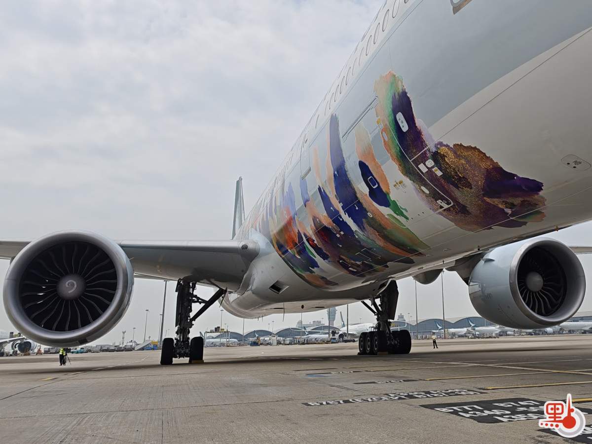據介紹,「精神號」機身塗裝由香港跨媒體藝術家黃宏達利用AI控制機械人創作而成。他說,自己的創作靈感源於香港山巒與城市景觀交織出的獨特色調,希望藉畫作向世界介紹多姿多彩的香港。