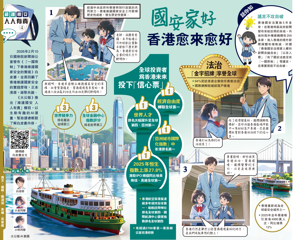 【點新聞報道】2026年2月10日國務院新聞辦公室發布《「一國兩制」下香港維護國家安全的實踐》白皮書,全面回顧了香港維護國家安全的實踐歷程,正本清源、凝聚共識。