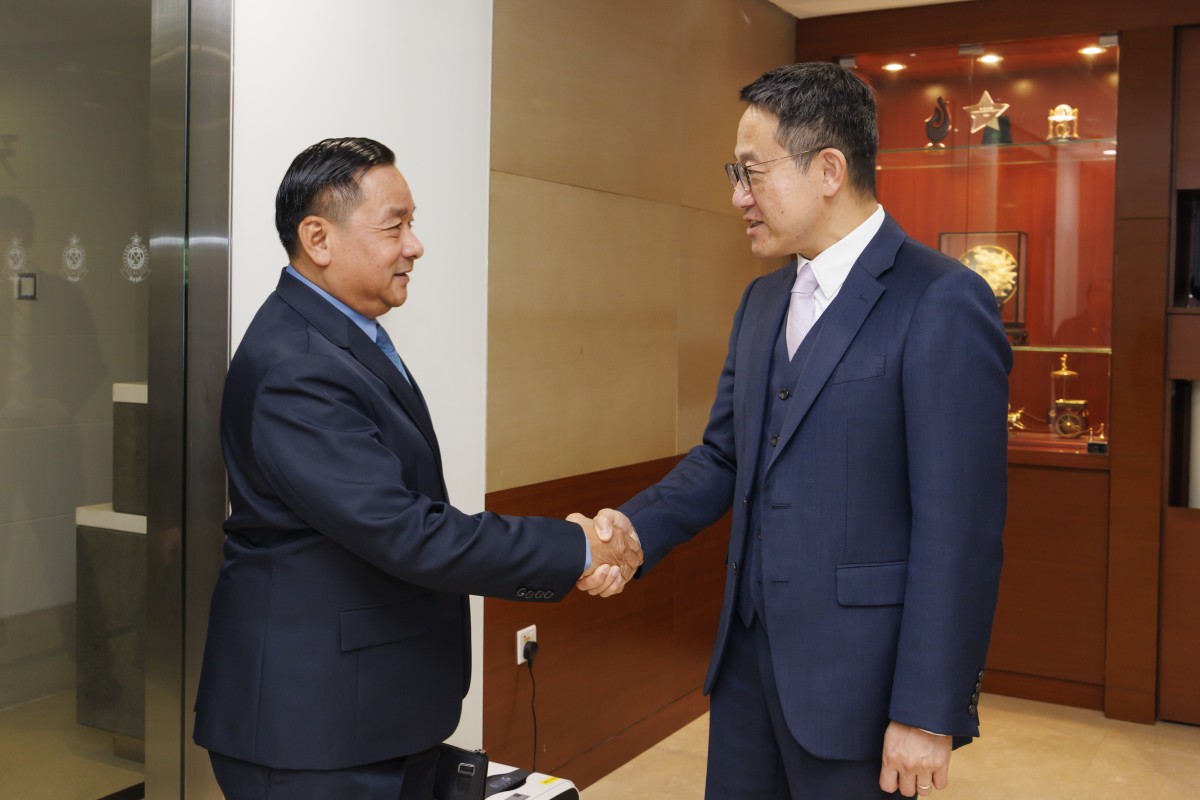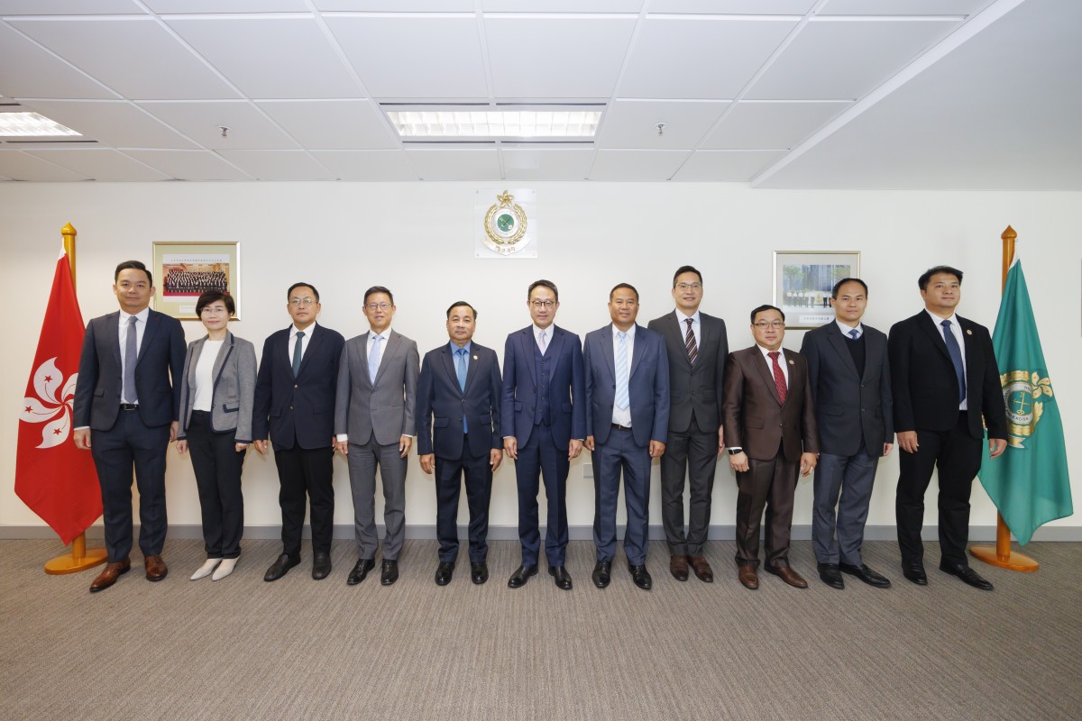 陳子達歡迎Phoukhaokham Vannavongxay及代表團成員到訪香港海關。會面期間,香港海關分享了香港作為國際貿易中心,在智慧海關建設方面的發展及應課稅品管制方面的工作和經驗。雙方亦就便商利貿等多個共同關注的議題交流討論。