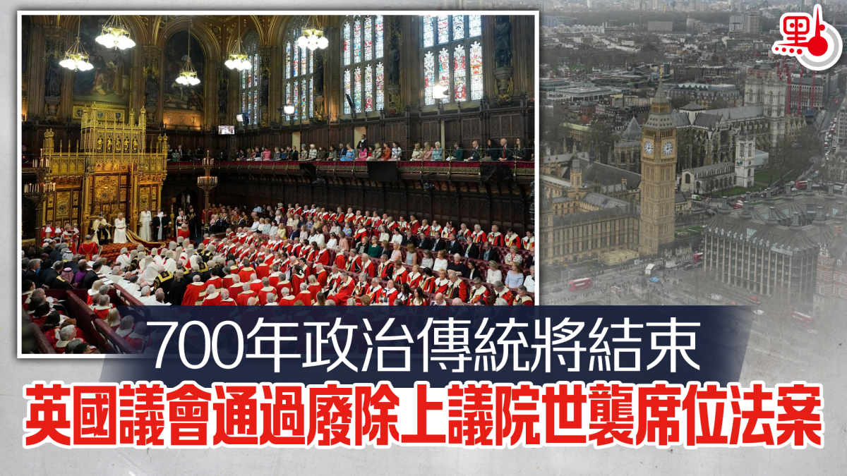 據報道,上議院議員於周二晚(10日)撤回對一項由下議院通過法案的反對意見,該法案旨在罷免數十位因貴族頭銜而繼承議會席位的公爵、伯爵和子爵。據BBC報道,最多將有92位世襲貴族在今年本屆議會結束時離開上議院,預計會期將於5月結束。